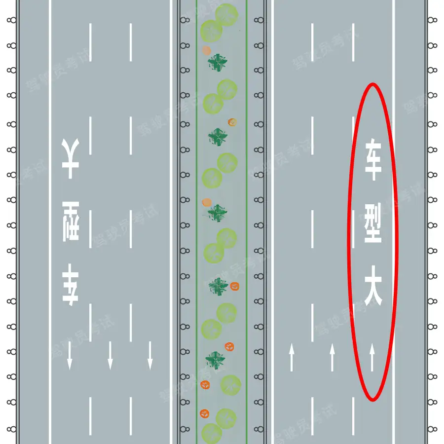 • 红圈内标线表示大型车应在该车道内行驶。正确错误