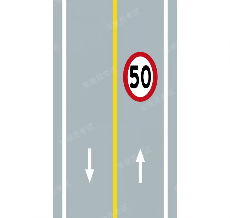 • 图中路面标记表示该路段最低限速50km/h。正确错误